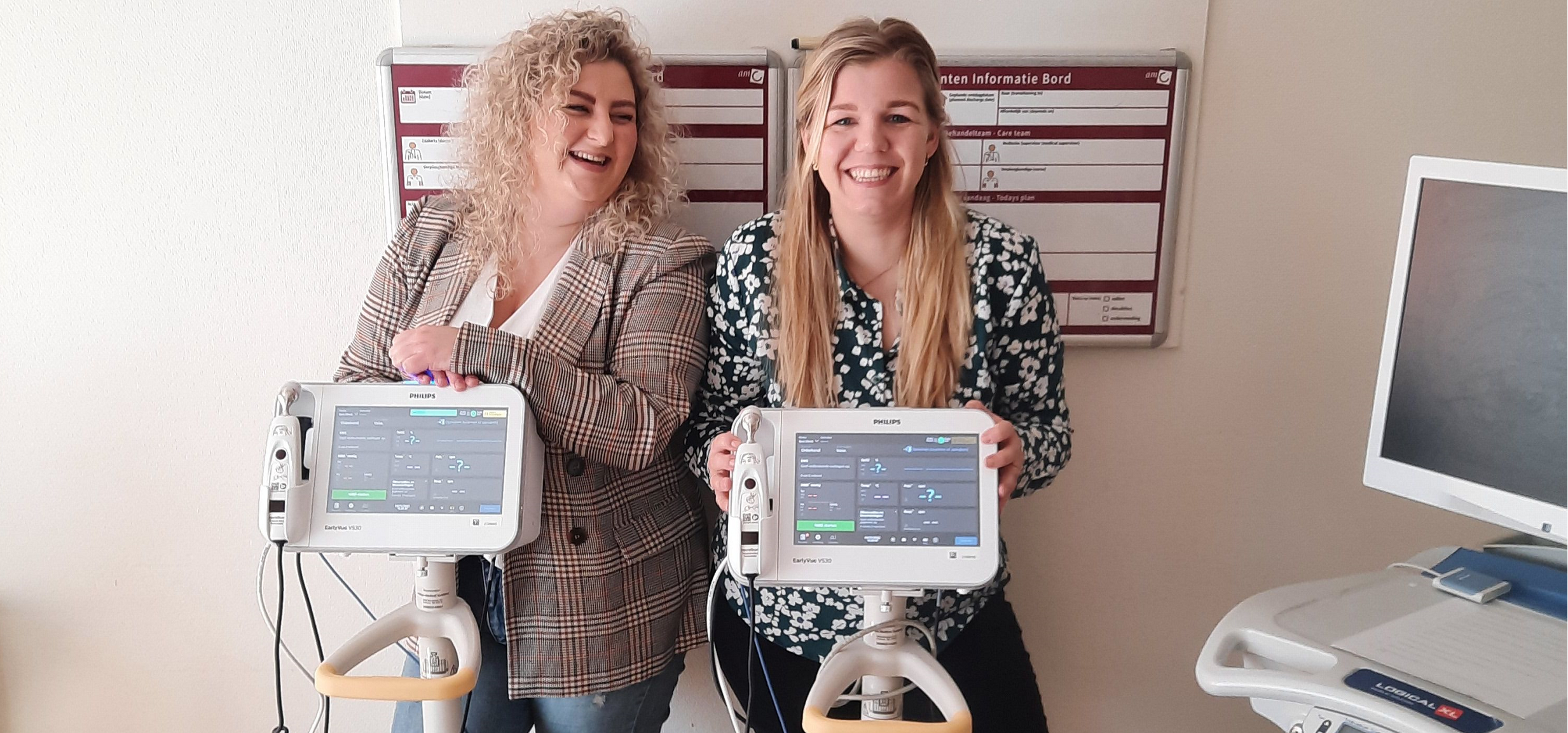 Het team van Femke en Romy is tijdens een brainstormsessie gaan nadenken over hoe ze kunnen blijven innoveren. Dit heeft geleid tot een nieuw project met Philips: de VS30 monitoren. “Deze monitoren helpen bij het verbeteren van registratielast en monitoring van een complexere patiënt,” legt Femke uit. “Het zorgt voor vroege signalering bij verslechtering van de patiënt,” vult Romy aan. “Dit is in ons werk enorm belangrijk, dus deze innovatieve hulp is zeer welkom. Daarnaast is het team heel enthousiast en goed aan de slag gegaan met de nieuwe monitors en de nieuwe werkwijze. Het is leuk om te zien dat het team deze nieuwe ontwikkelingen zo goed oppakt en zich er met ze allen voor inzet.”