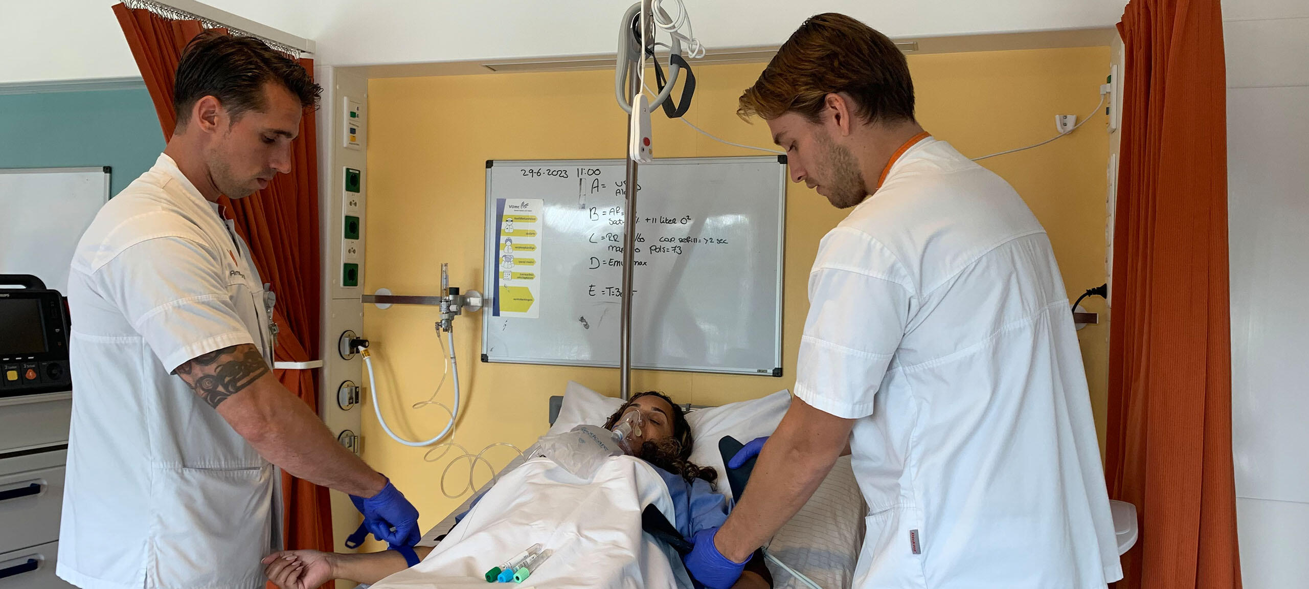 Alexander klinkt instemmend: ‘’Inderdaad dit is heel belangrijk. Als een patiënt acuut instabiel wordt heb je elkaar echt nodig. We zijn daarnaast als afdeling een hechte groep en doen ook in onze vrije tijd veel dingen samen. Zonder collega’s zou het werk een stuk saaier zijn.’’
