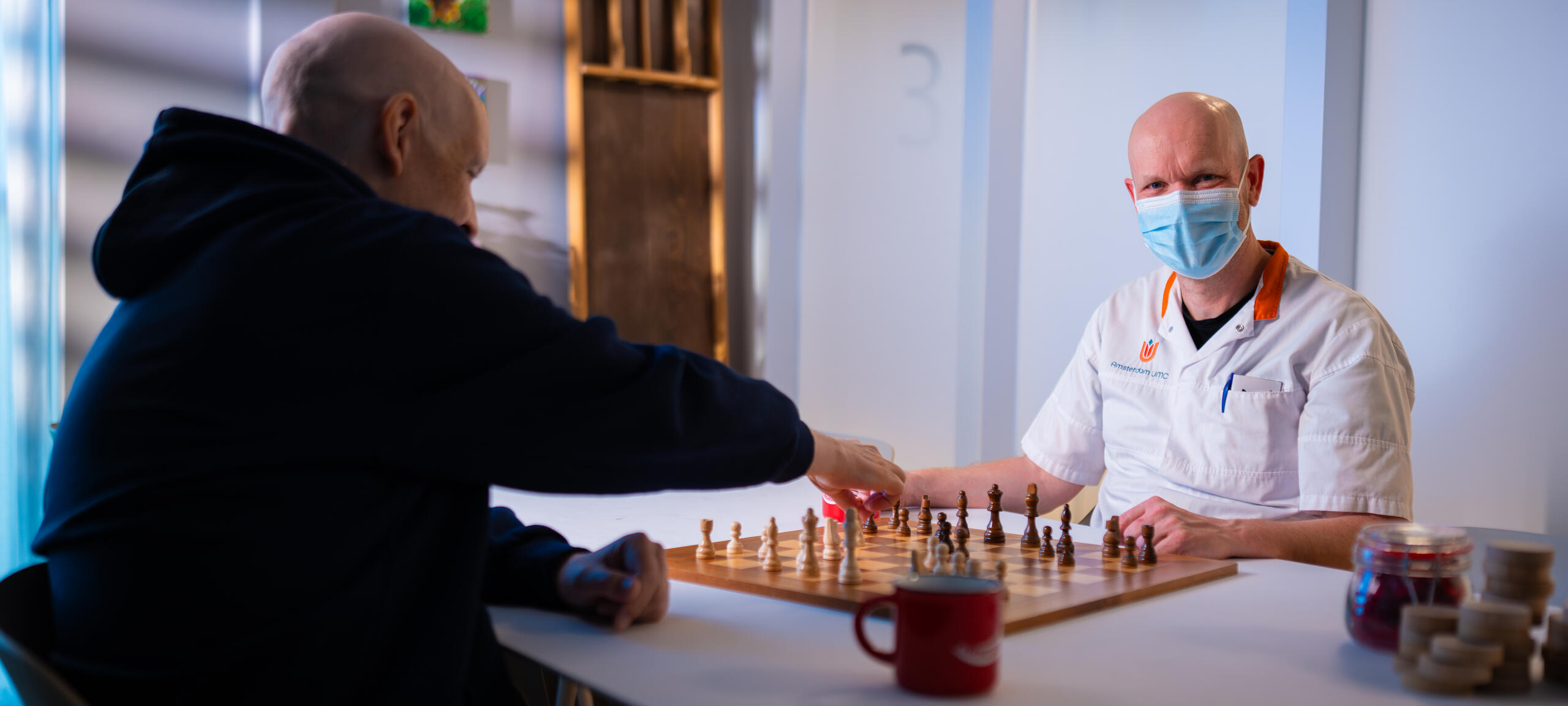 “Voor het werk betekent dat: je bent in verhouding veel minder tijd kwijt aan dagelijkse dingen zoals hulp bij aankleden en wassen (ADL) dan op andere afdelingen. Veel mensen kunnen dat prima zelf en wie erg ziek is, was je op bed. Je hebt veel meer tijd voor de sociale kant, er is veel gezelligheid. Ook gaan we hier lekker informeel met elkaar om, het is niet zo hiërarchisch.”