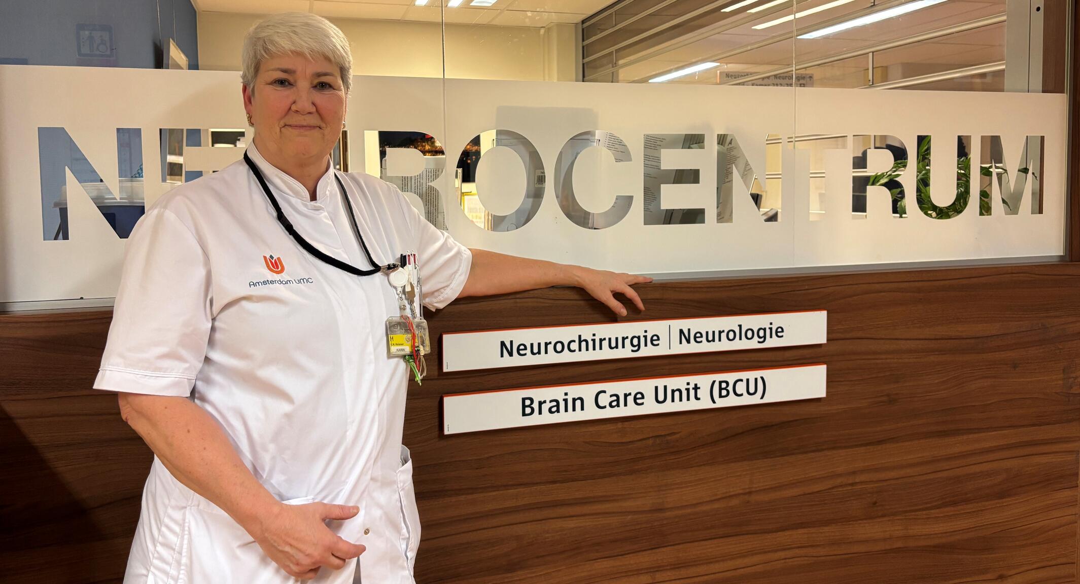 “Als dertiger begon ik mijn loopbaan als zorgondersteuner in een zorgcentrum en heb me steeds verder ontwikkeld. Als 52-jarige deed ik in het Neurocentrum de interne opleiding tot IAT-verpleegkundige. Die techniek is hier in Amsterdam UMC ontwikkeld en sinds nog geen 10 jaar in gebruik. Je blijft hier leren. Nieuwe technieken en inzichten uit onderzoek naar herseninfarcten vinden in Amsterdam UMC snel de weg naar de dagelijkse praktijk. Ons team is heel divers; ik draag mijn ervaring over aan jonge collega’s die net van de opleiding komen, en omgekeerd leer ik ook van hen: zij zijn met de nieuwste kennis opgeleid.”