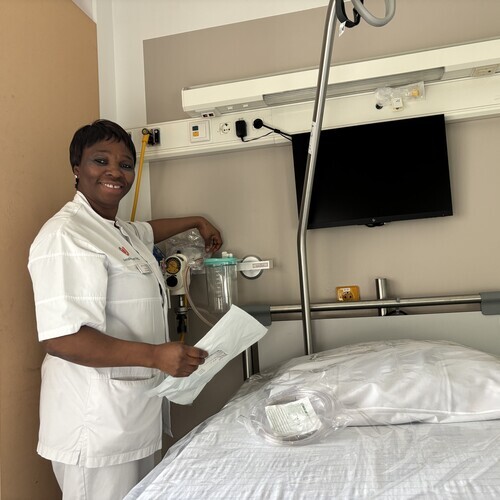 “Ik werk nauw samen met verpleegkundigen. Het is echt teamwerk. Bijvoorbeeld als patiënten om eten vragen, terwijl ze nuchter moeten blijven voor een ingreep. Ik check dit bij de verantwoordelijke verpleegkundige, om geen onnodige fouten te maken.”