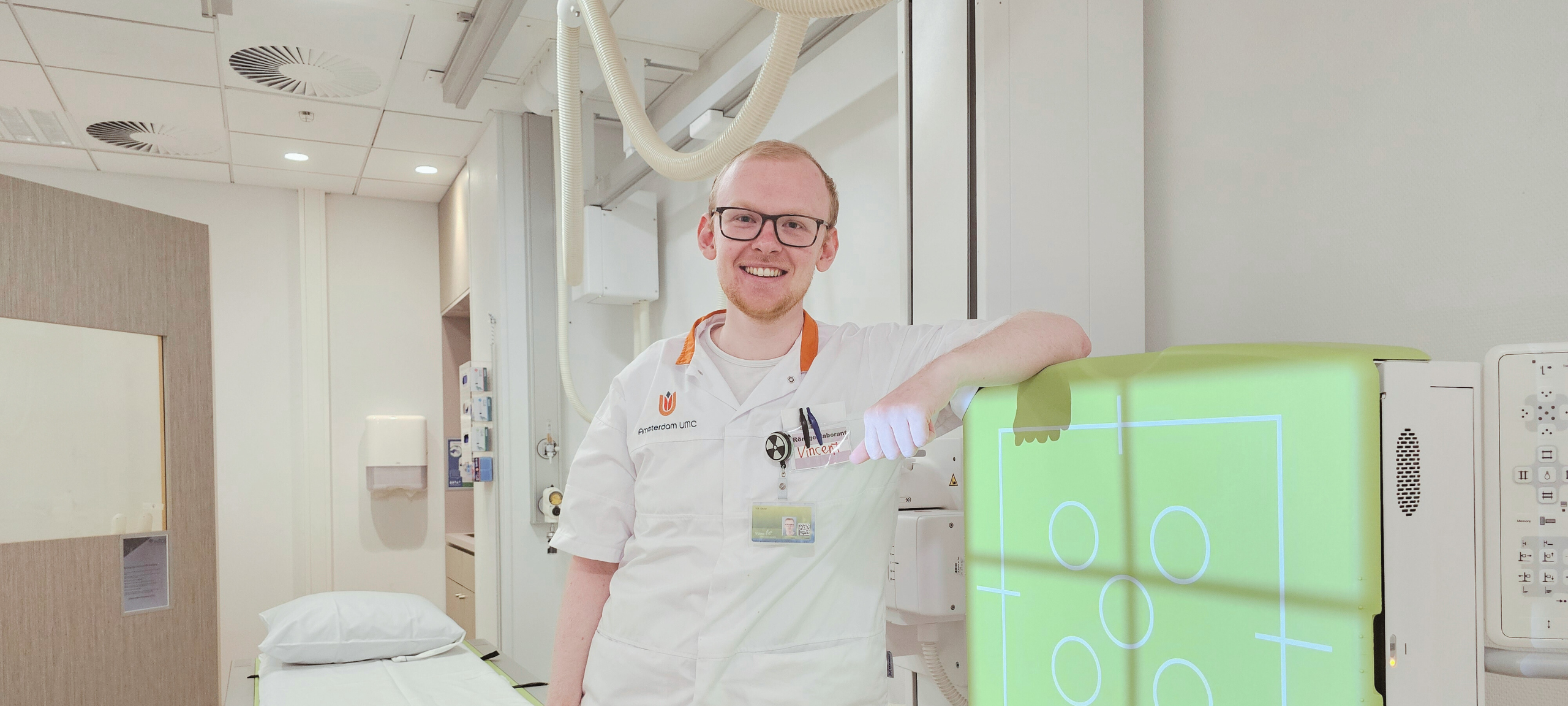 Vincent (26 jaar) is radiodiagnostisch laborant. Hij studeerde MBRT en werkt al bijna 2,5 jaar op de afdeling radiologie op locatie VUmc. “Ik heb voor Amsterdam UMC gekozen, omdat dit een van de grootste ziekenhuizen van het land is. Hier doen ze veel onderzoek en komen complexere ziektebeelden vaker voor dan elders. Dat maakt mijn werk uitdagend. Én ik vind het heel leuk om te werken in het meest bekende ziekenhuis van de stad waar ik ben opgegroeid. Ook ben ik werkbegeleider van laboranten en assistenten in opleiding. Ook daar haal ik veel energie uit.”