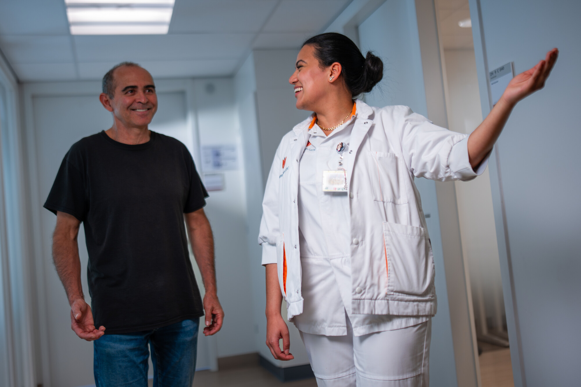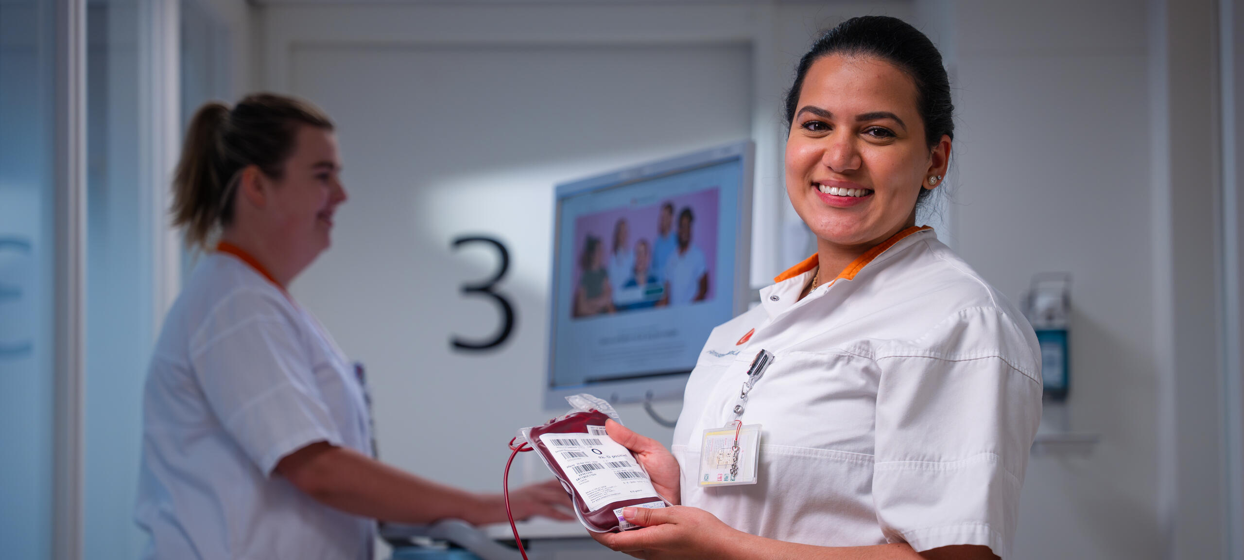 “Je bent hier nooit uitgeleerd. Werken in een academisch ziekenhuis betekent dat je betrokken wordt bij wetenschappelijk onderzoek naar nieuwe behandelingen en medicatie. Op onze afdeling worden heel bijzondere en vernieuwende behandelingen gegeven. Denk aan CAR-T, een nieuwe immuuntherapie tegen kanker. Daarbij worden je eigen T-cellen in een lab op een bepaalde manier aangepast en teruggebracht in je lichaam, zodat ze kwaadaardige cellen kunnen uitschakelen.”